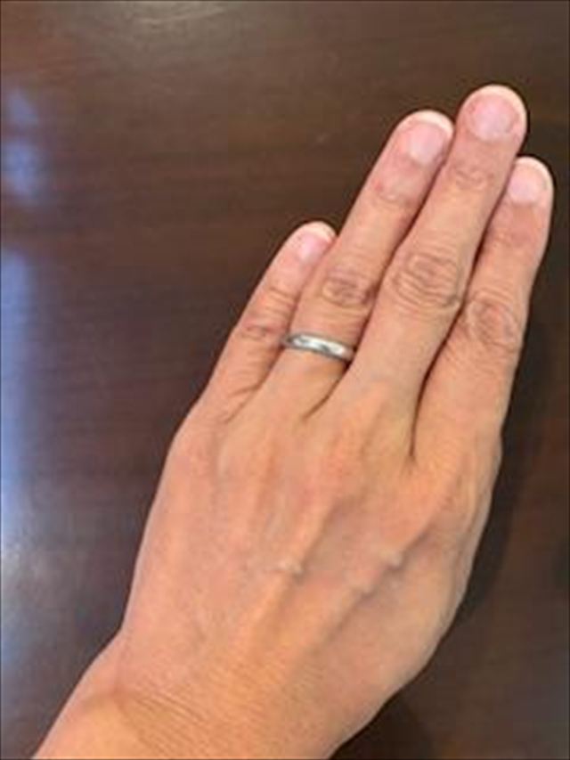 私は家事をするときに指輪を外すことがありますが、夫は結婚してからおそらくほとんど外していないと思います。ゴルフをしたときに圧力がかかって少し指輪が歪んだらしく今は指の関節を通過することができず外せない状況のようです。自分もそうですが相手もずっとつけ続けているということが、とても幸せなことだと思います。古い考えかもしれませんがこういうつながりが心もつなげてくれているように感じます。長くつけ続けることができるデザインを選んで良かったと思います。